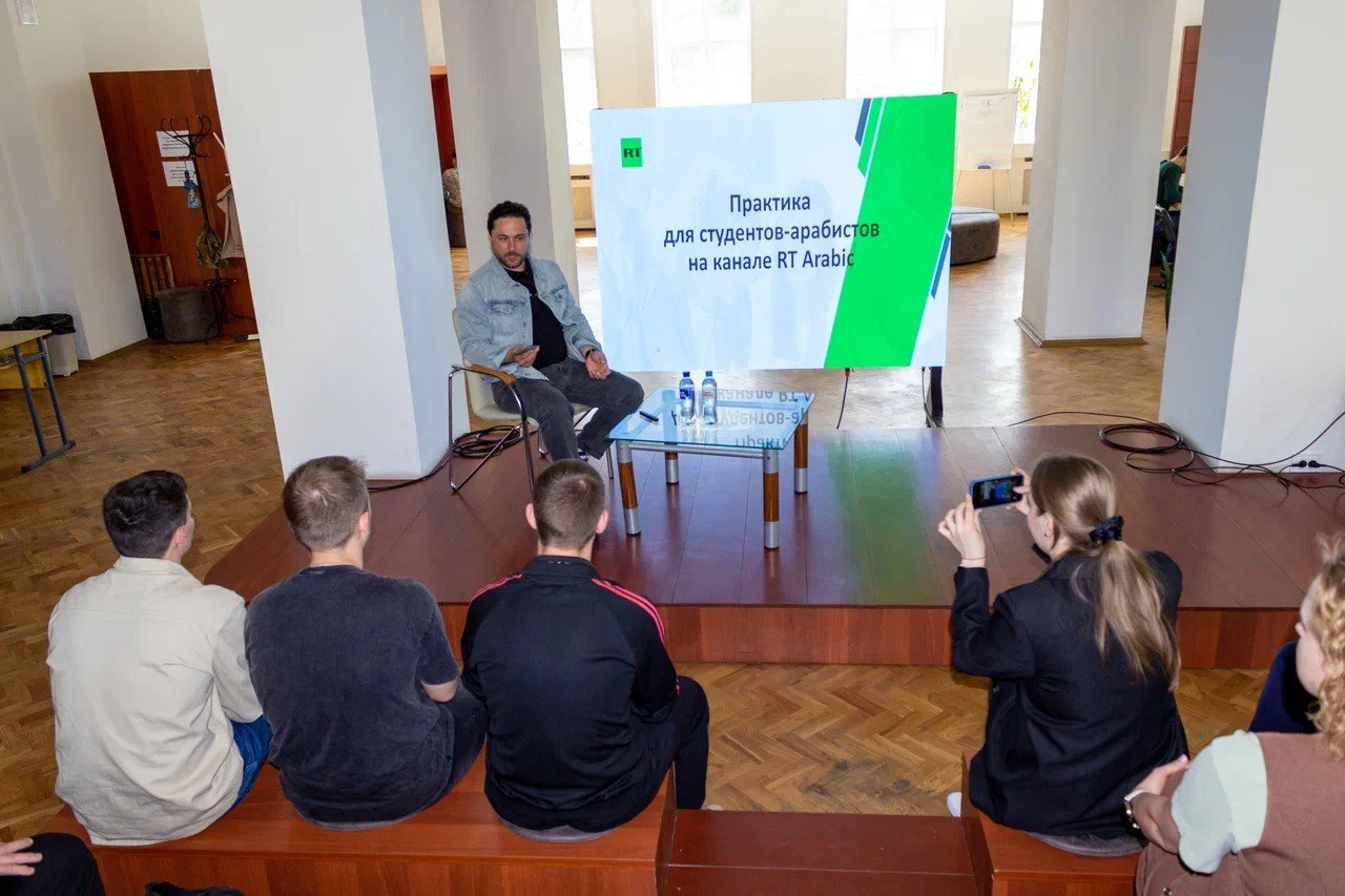 В ходе мастер-класса специалисты поделились с студентами секретами правильного написания новостей, особенностями работы военного корреспондента, а также рассказали о стажировке в RT Arabic.