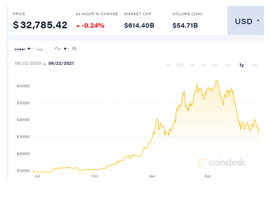 وفيما يلي منحى تداول عملة "البيتكوين" في نحو عام: