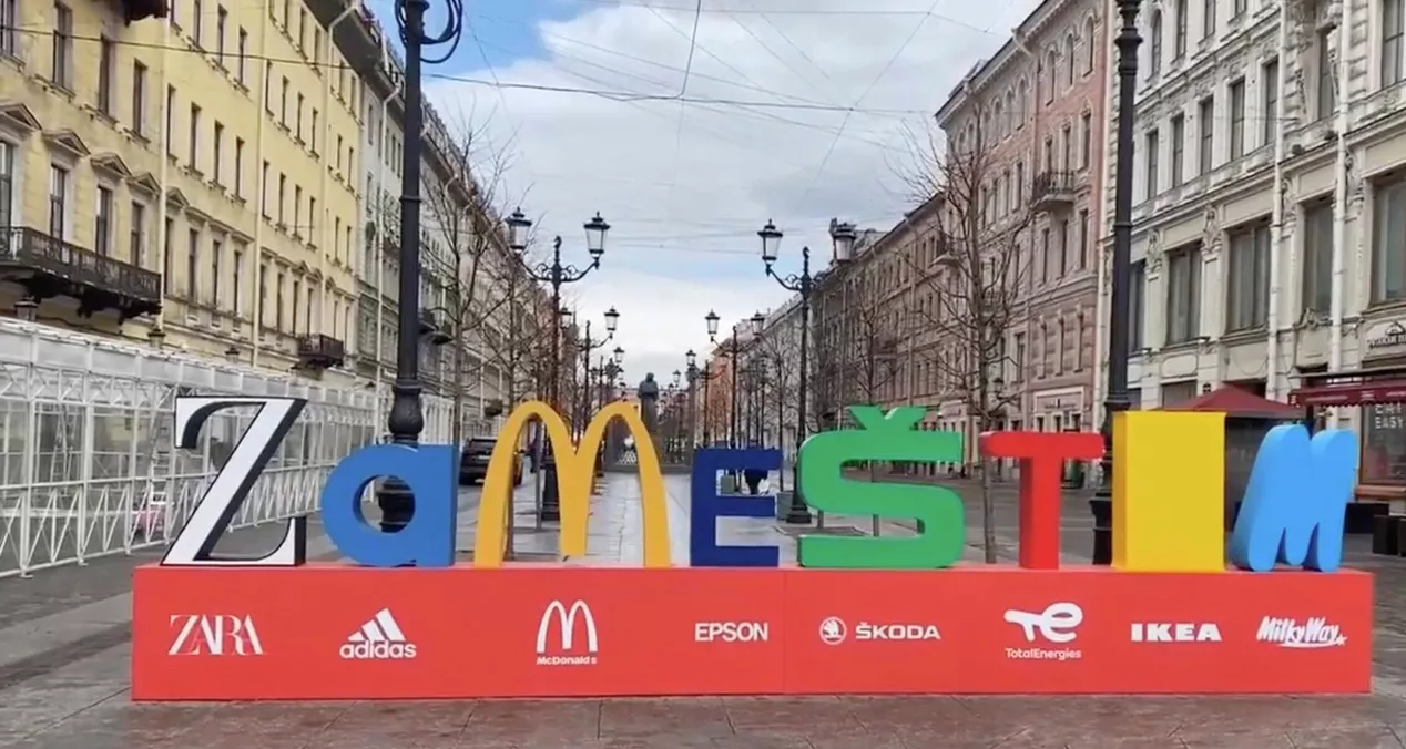 وظهر في مركز مدينة سان بطرسبورغ مجسم عبارة عن كلمة ZAMESTIM، والتي تم تجميعها من أسماء وشعارات الشركات الأجنبية التي أوقفت نشاطها في روسيا بسبب العقوبات الغربية.