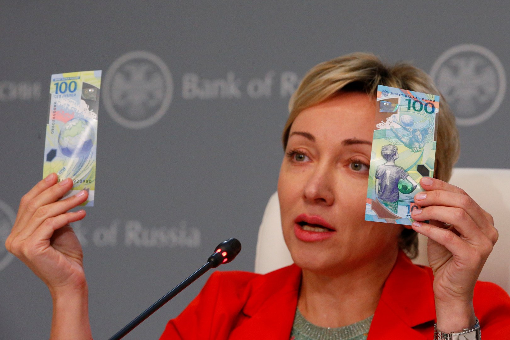 أصدر البنك المركزي الروسي أوراقا نقدية تذكارية من فئة 100 روبل، بمناسبة استضافة روسيا لبطولة كأس العالم لكرة القدم 2018.