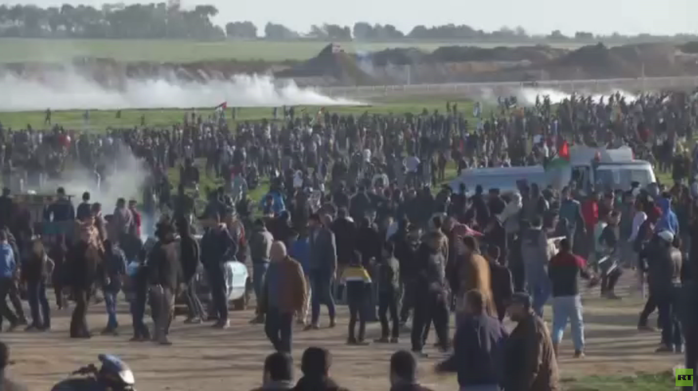قتل متظاهران أحدهما طفل في مخيم العودة شرق خان يونس بقطاع غزة وأصيب آخرون برصاص القوات الإسرائيلية في جمعة "لن نساوم على كسر الحصار"