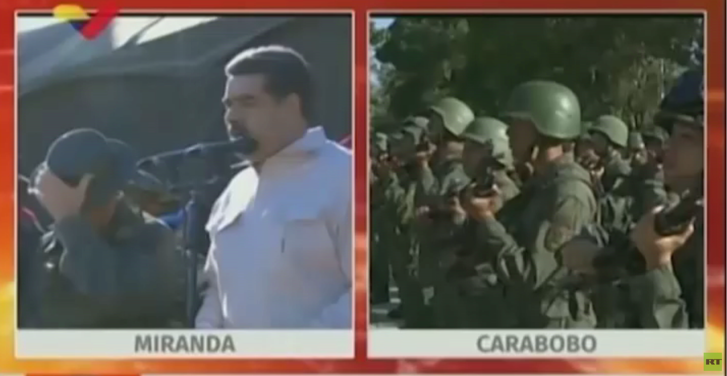 بدأ الجيش الفنزويلي مناورات عسكرية وصفت بالضخمة، في ولاية ميراندا شمالي البلاد بحضور الرئيس نيكولاس مادورو، الذي أكد أثناء كلمته أن المناورات ستستمر5 أيام..