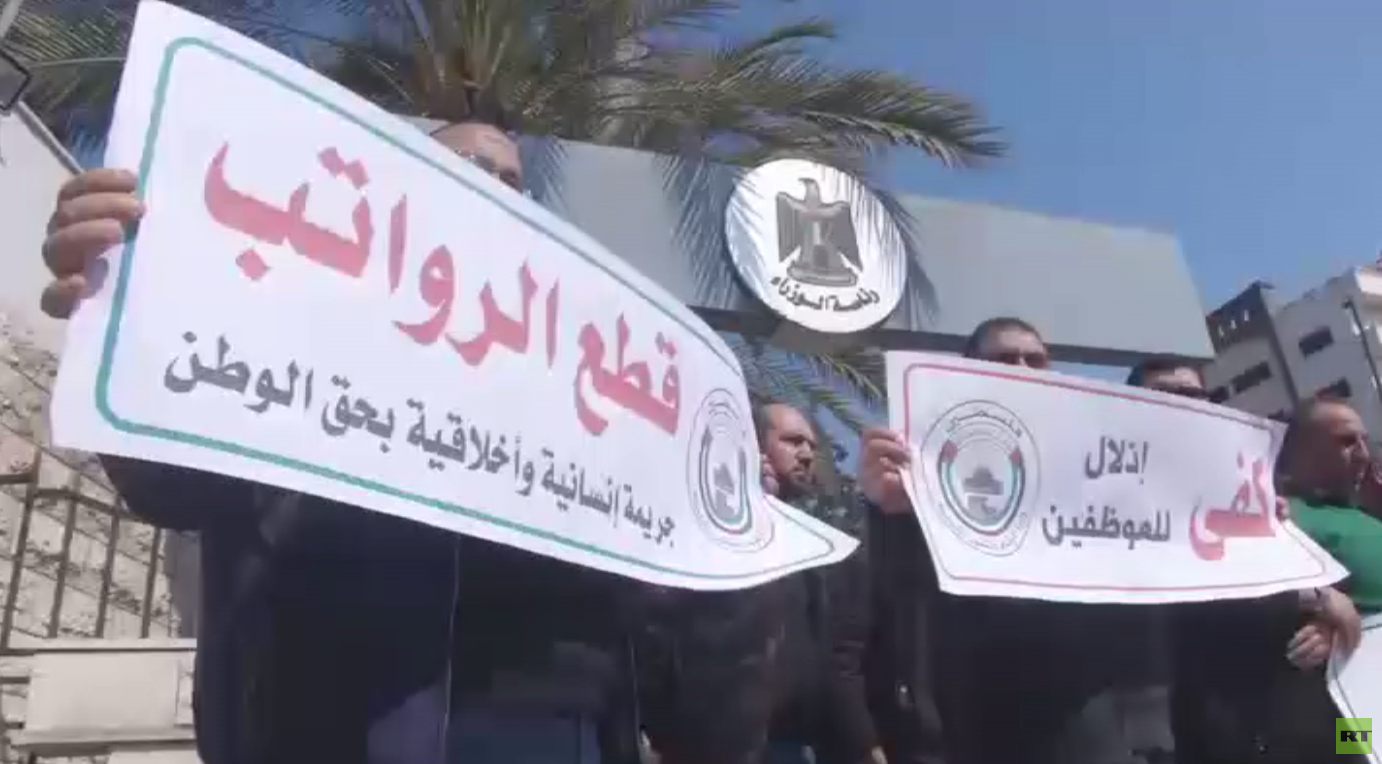 ينظم موظفو السلطة في قطاع غزة عشرات الفعاليات الاحتجاجية ضد سياسة قطع الرواتب، وكانت السلطة الفلسطينية قد أعلنت عن إجراءات جديدة تسعى من خلالها إلى إلزام حماس بإنهاء الانقسام..