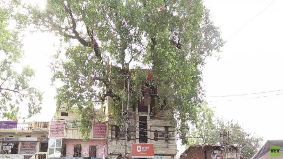 شجرة تين عملاقة تتوسط مبنى في الهند