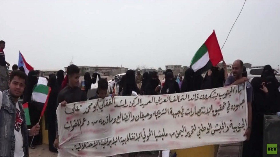 خرج العشرات من أبناء عدن في وقفة تضامنية تدعم التواجد الإماراتي في اليمن، يأتي ذلك بالتزامن مع تصريحات عن عزم أبو ظبي سحب قواتها وفق خطة لإعادة الانتشار.