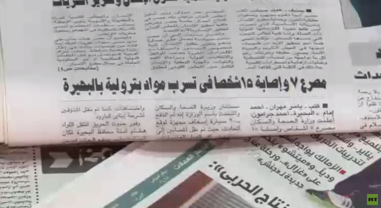 قتل7 أشخاص وأصيب آخرون في حادث اندلاع حريق بأنبوب لنقل مواد الوقود في محافظة البحيرة بدلتا مصر. هذا وتواصل النيابة العامة المصرية تحقيقاتها.وقد شاركت في إخماد النيران 15عربة إطفاء
