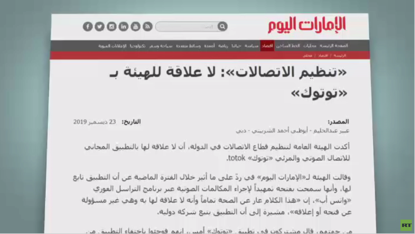 الإمارات: لا علاقة لنا بتطبيق TOTOK