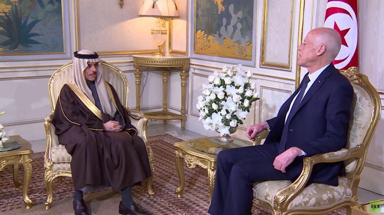 بحث الرئيس التونسي قيس سعيد مع وزير الخارجية السعودي فيصل بن فرحان، ومسؤولين سعوديين آخر التطورات في المنطقة..