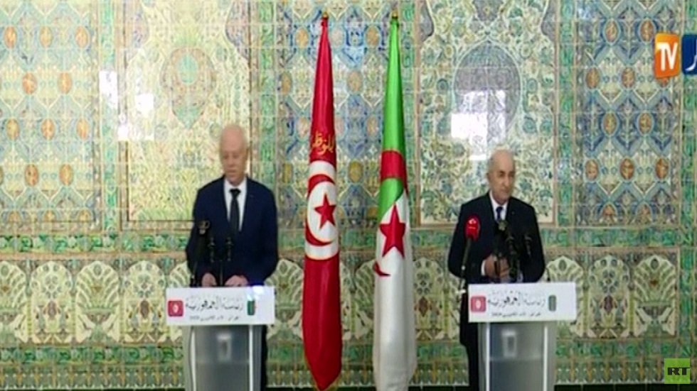 أكد الرئيس الجزائري عبد المجيد تبون خلال مؤتمر صحفي مشترك مع نظيره التونسي قيس سعيد في الجزائر، استعدادَ البلدين استضافةَ جلسات حوار بين الأطراف الليبية.