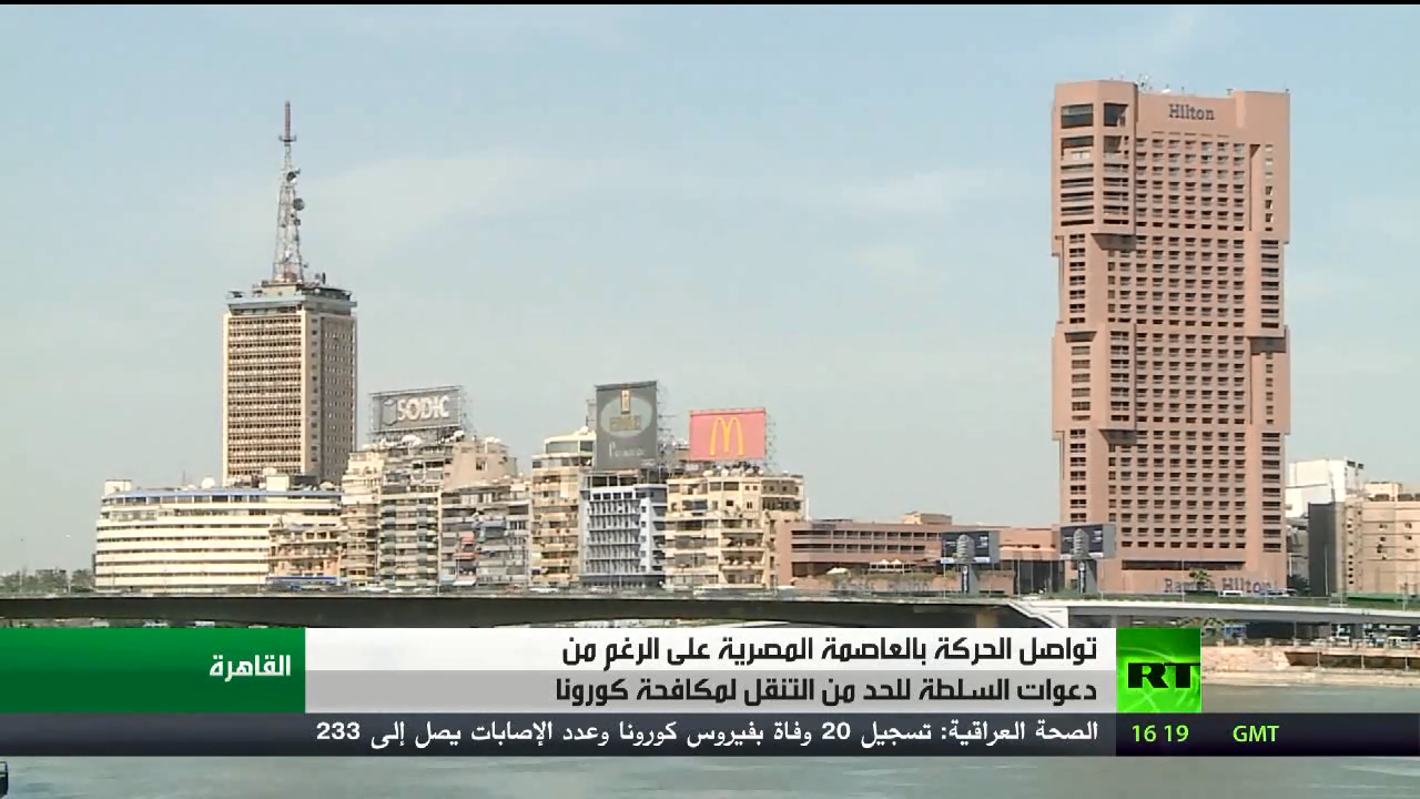 هذا ولم تتوقف حركة المصريين أو وسائل النقل في العاصمة المصرية القاهرة، على الرغم من تشديد السلطاتِ على ضرورة وقف التنقل والحد منه.