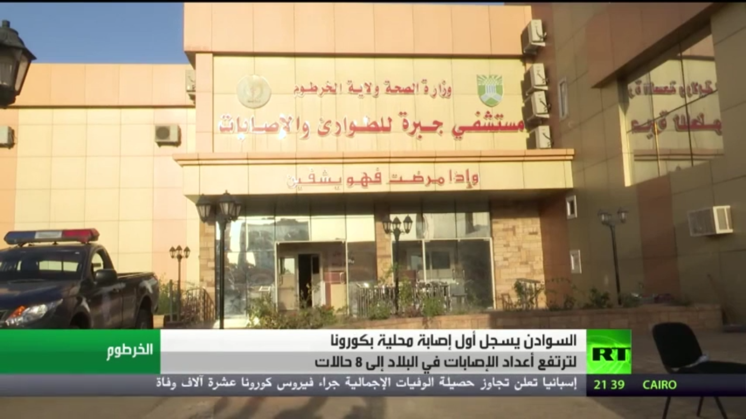 أعلنت وزارة الصحة السودانية تسجيل حالة الإصابة الأولى داخل البلاد لأحد مخالطي الحالات المؤكدة الوافدة ليرتفع عدد المصابين بالبلاد إلى ثمانية إصابات..