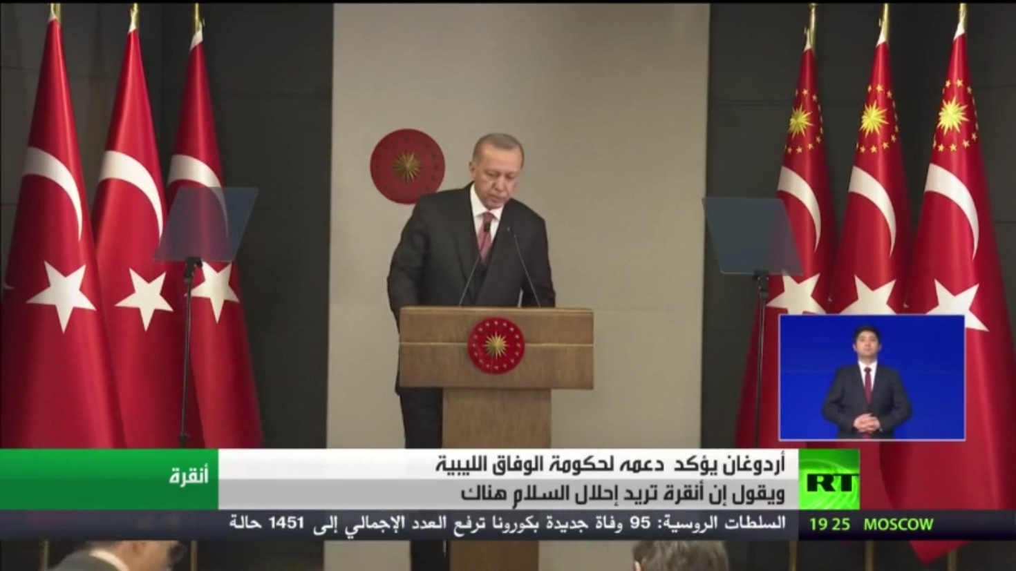 أكد الرئيس التركي رجب طيب أردوغان أن بلاده ستواصل دعمها لحكومة الوفاق الليبية، وأشار الرئيس التركي إلى أن تقدم قوات حكومة الوفاق مؤخرا كان بفضل الدعم التركي.