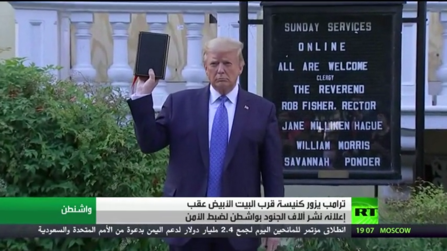 قال الرئيس الأمريكي دونالد ترامب خلال تفقد كنيسة سانت جون قرب البيت الأبيض إن بلاده ستعود أقوى.