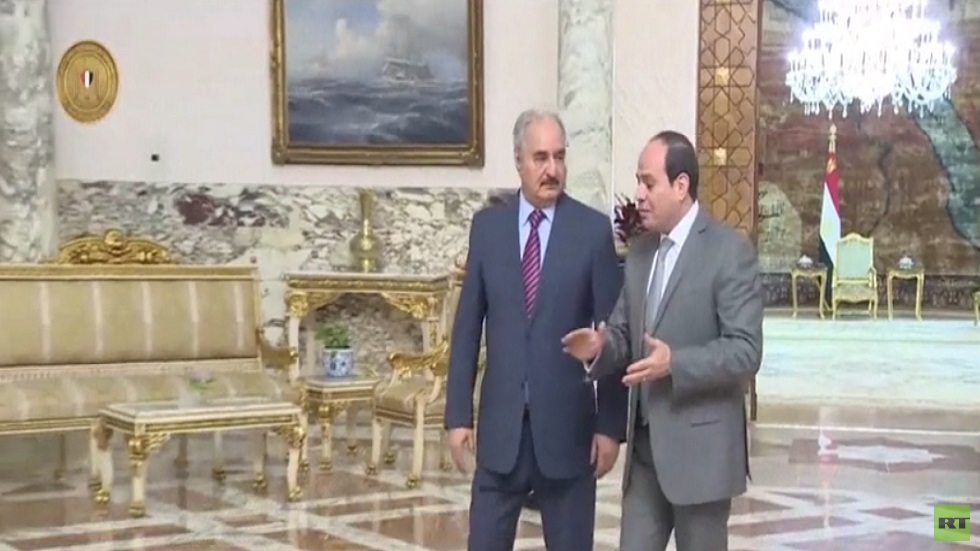 في هذه الأثناء بحث قائد الجيش الوطني الليبي المشير خليفة حفتر آخر تطورات الاوضاع في الاراضي الليبية مع المسؤولين المصريين.