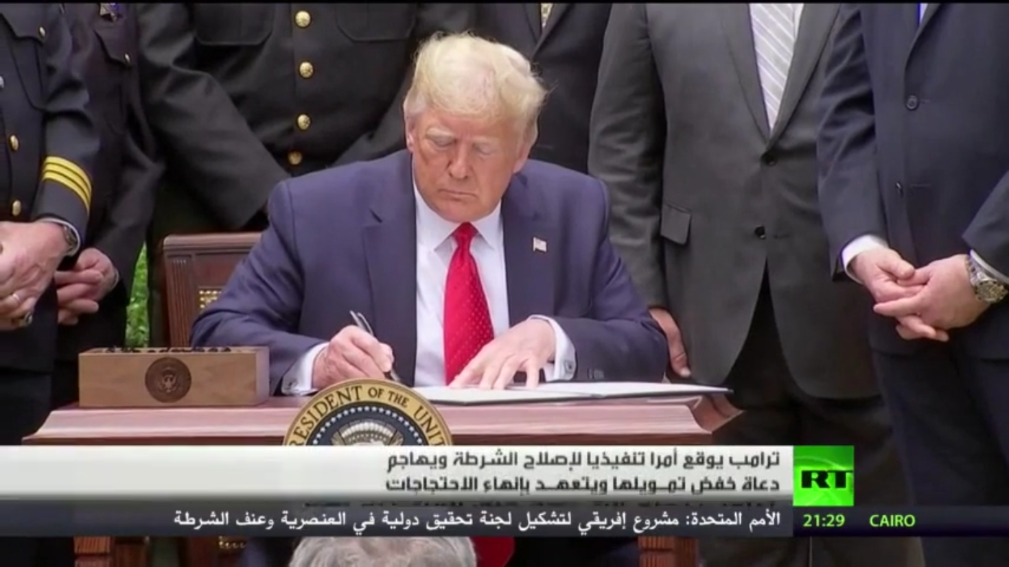 وقع الرئيس الأمريكي دونالد ترامب أمرا تنفيذيا يحظر على الشرطة خنق المشتبه بهم أثناء محاولة اعتقالهم إلا في حالات الخطر..
