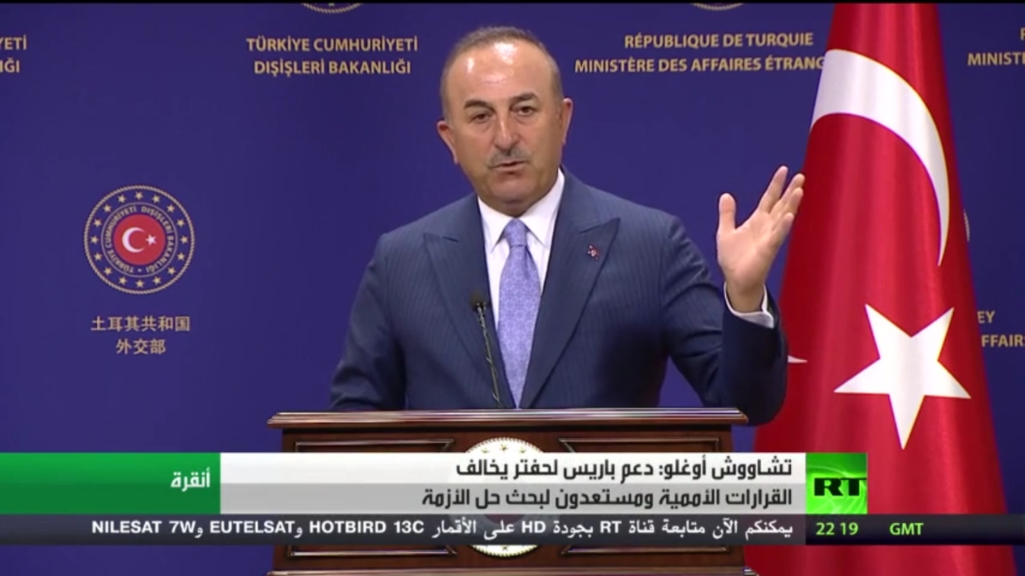 قال وزير الخارجية التركي مولود تشاووش أوغلو إن دعم فرنسا للمشير خليفة حفتر يتعارض مع قرارات الأمم المتحدة.