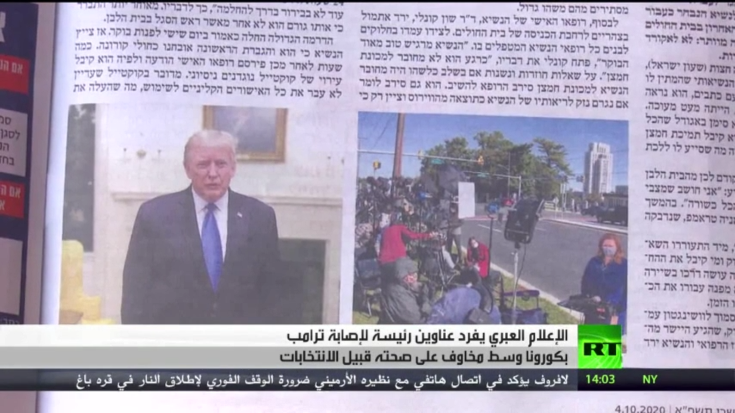 تناولت وسائل الإعلام الإسرائيلية ببالغ الاهتمام الحالة الصحية للرئيس الأمريكي دونالد ترامب بظل نشر القادة السياسيين على مواقعهم الرسمية دعوات له ولعقيلتِه بالشفاء العاجل من كورونا