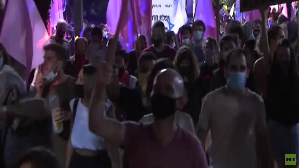وخرجت تظاهرة مناهضة له في تل ابيب ومدن أخرى احتجاجا على سياسته في الحكم، وتدهور الاقتصاد، وانتشار جائحة كورونا إضافة إلى قضايا فساد تلاحقه.