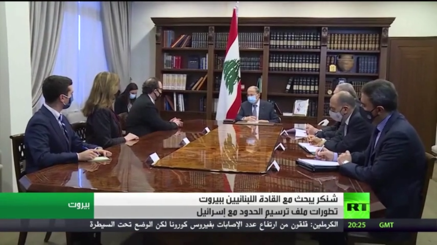 بحث مساعد وزير الخارجية الأميركية لشؤون الشرق الأوسط، ديفيد شنكر في بيروت مع المسؤولين اللبنانيين مفاوضات ترسيم الحدود البحرية مع إسرائيل.