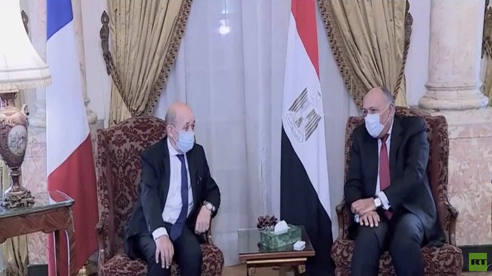 شدد وزيرا خارجية مصر وفرنسا خلال مباحثاتهما في القاهرة على أهمية دعم الجهود الرامية للتوصل إلى تسوية سياسية للأزمة في ليبيا. وأكد الوزيران على رفض أي خطط تهدف لتقسيم ليبيا.