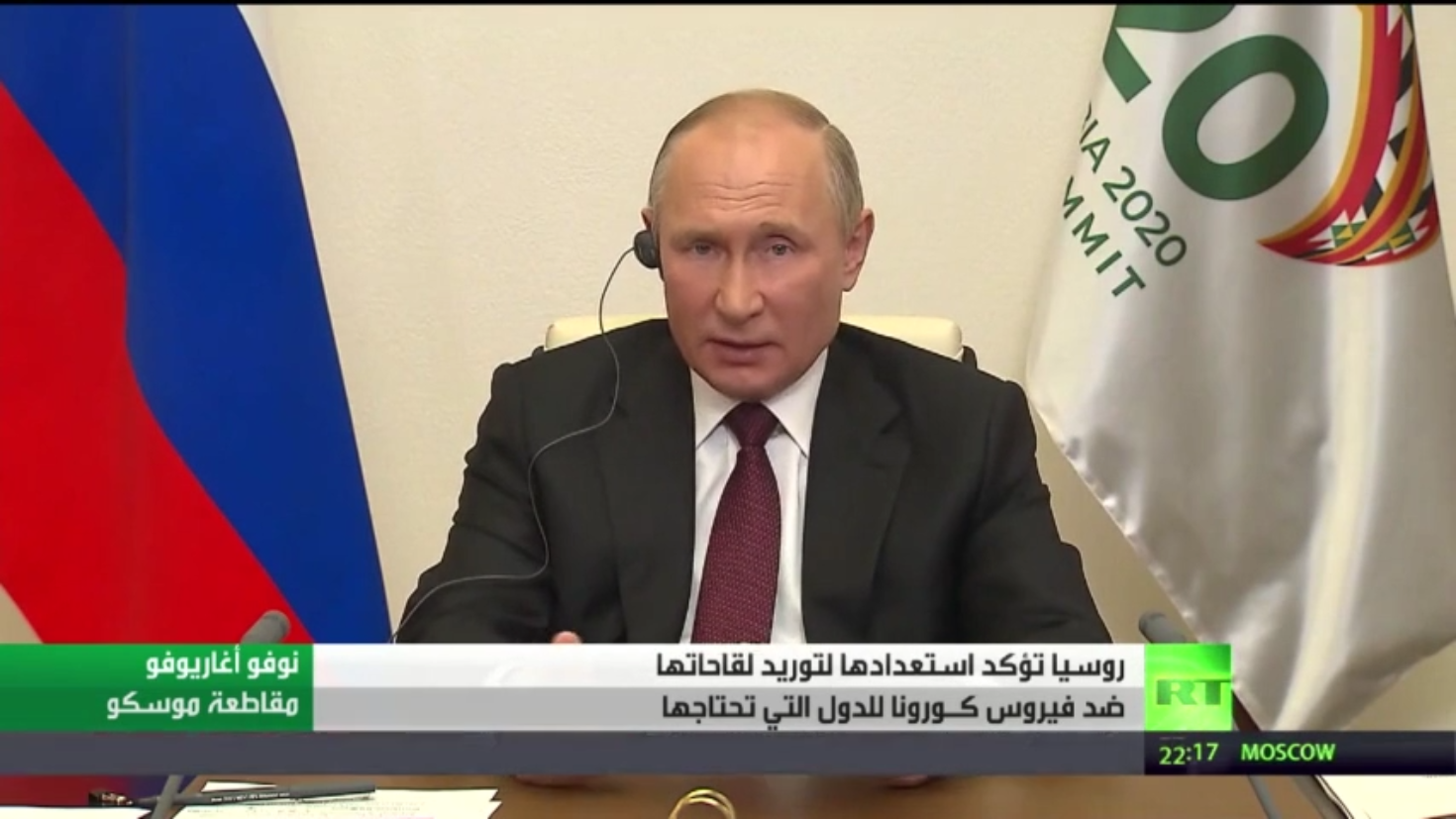أكد الرئيس الروسي فلاديمير بوتين خلال قمة قادة مجموعة العشرين في السعودية استعداد روسيا لتقديم اللقاحات المضادة لفيروس كورونا لأي دولة تحتاجها.