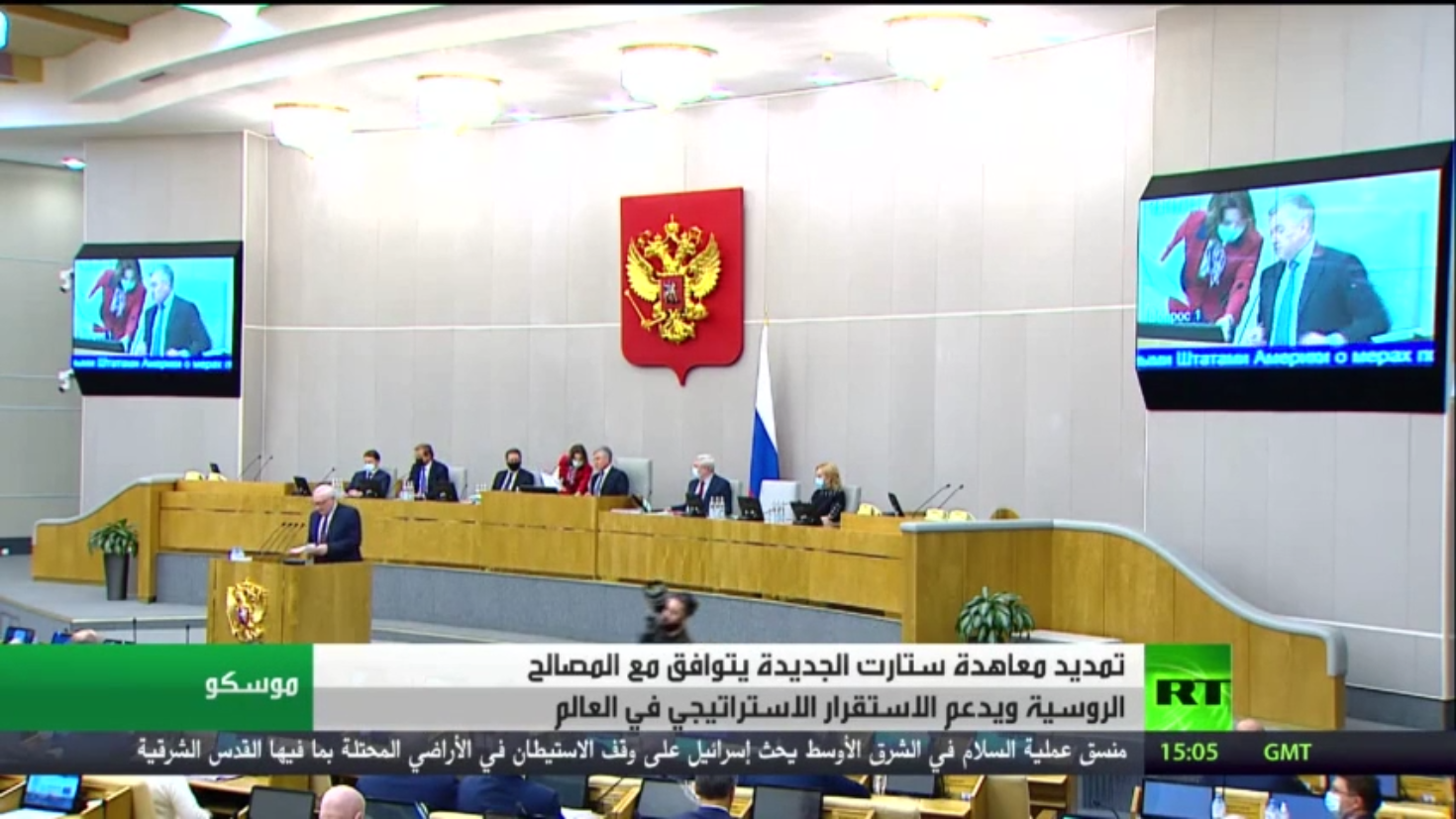 صدق البرلمان الروسي بغرفتيه، مجلس الدوما ومجلس الاتحاد، على مشروع قانون قدمه الرئيس فلاديمير بوتين لتمديد معاهدة ستارت3 بين روسيا والولايات المتحدة حتى الـ5 من فبراير من عام 2026