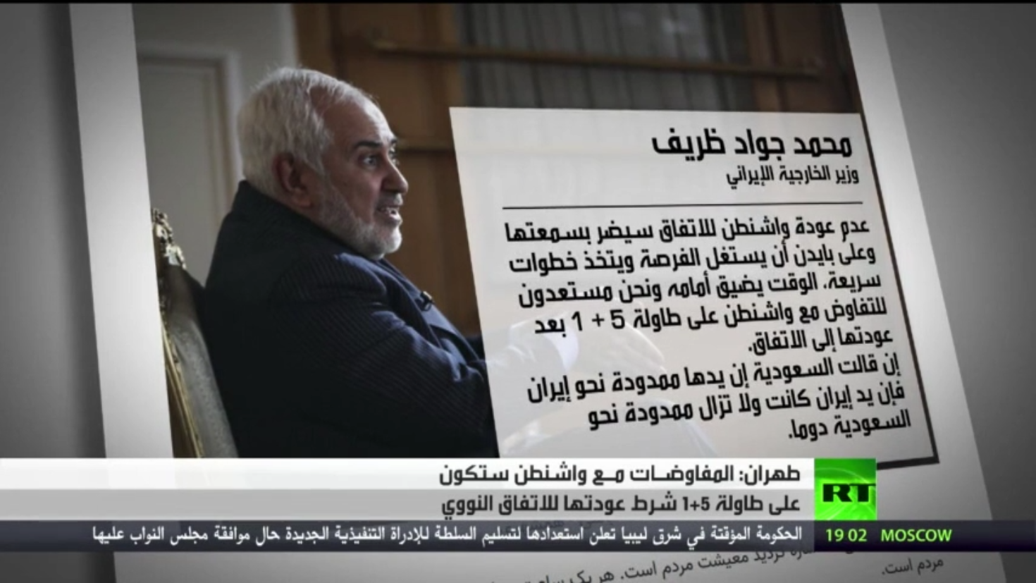 قَال وزير الخارجية الإيراني محمد جواد ظريف إن طهران لن تتفاوض مع واشنطن إلا على طاولة 5 + 1 ، وبعد عودتها للاتفاق النووي، مؤكدا في الوقت ذاته استعداد بلاده للحوار مع السعودية.