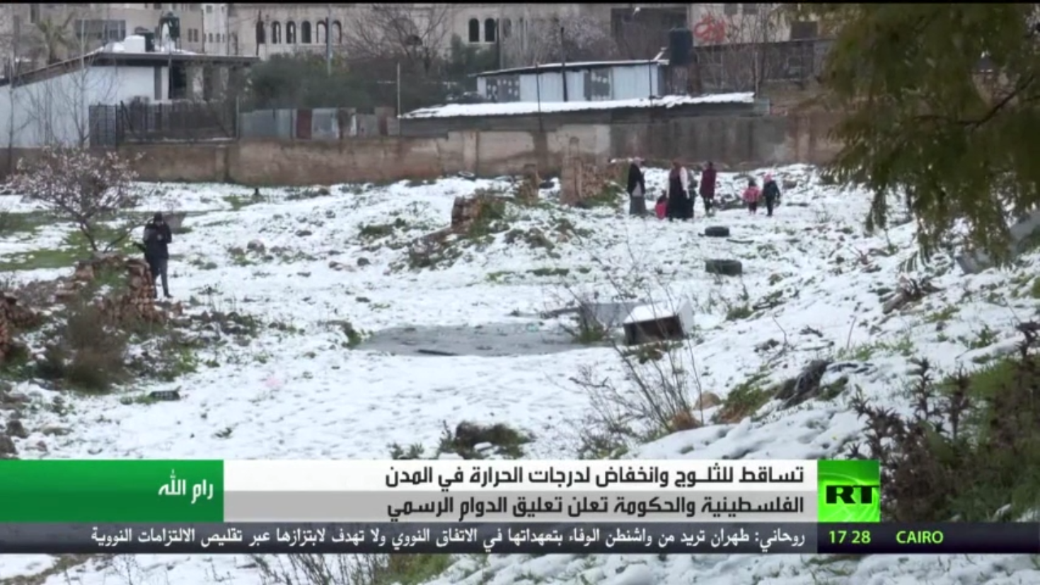 وفي الأراضي الفلسطينية علقت السلطات العمل والدوام الرسمي جراء إغلاق الطرق، لكن ذلك لم يمنع المواطنين، وبخاصة الأطفال الاستمتاع بالثلوج رغم تسجيل عدد من الحوادث.