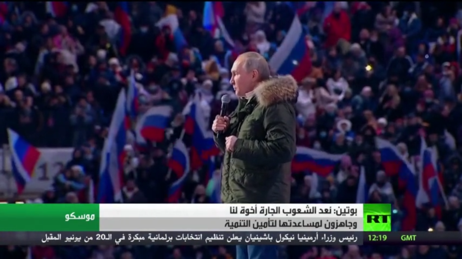 مشيراً خلال خطاب له بمناسبة الذكرى الـ7 لعودة شبه جزيرة القرم إلى الوطن الأم روسيا إلى استعداد روسيا لمساعدة الشعوب الجارة ودعمها.