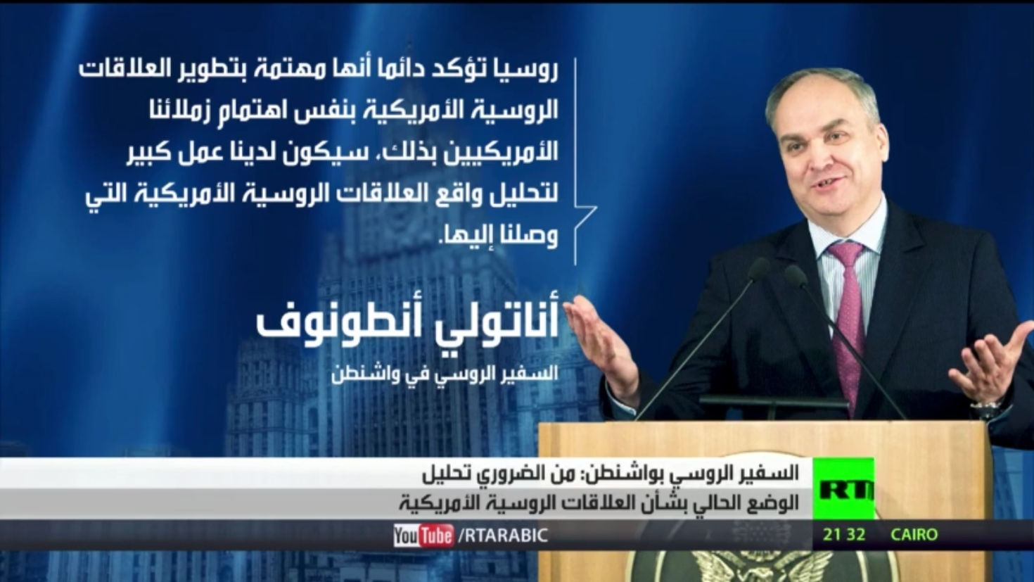 أكد السفير الروسي لدى واشنطن أناتولي أنتونوف إثر مغادرته الولايات المتحدة إلى موسكو للتشاور على خلفية تصريحات بايدن، أكد ضرورة تحليل الوضع الحالي للعلاقات الروسية الأمريكية.