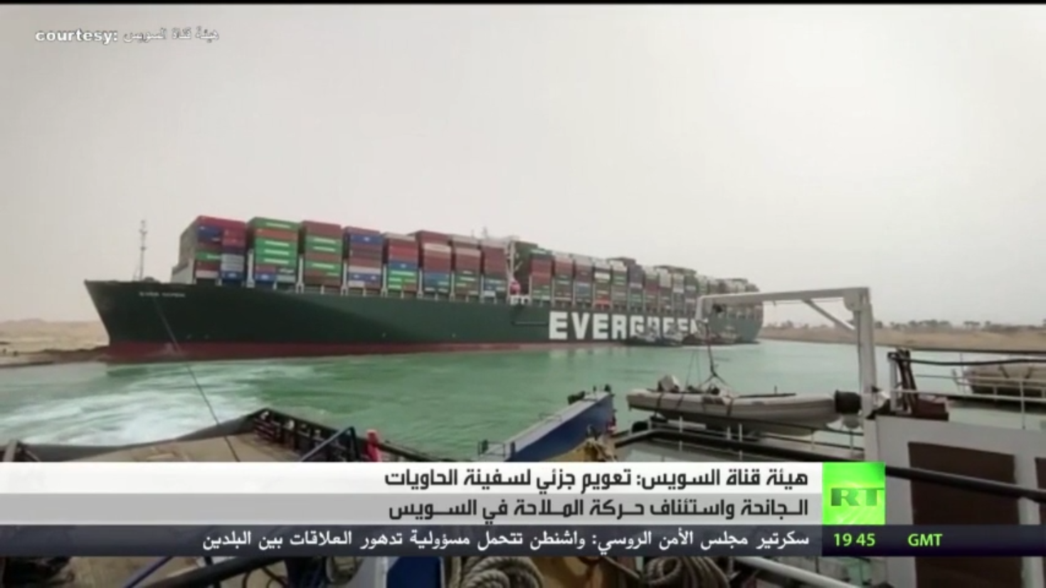 أعلنت هيئة قناة السويس إعادة التعويم الجزئي لسفينة الحاويات العملاقة التي جنحت خلال عبورها قناة السويس بسبب سوء الأحوال الجوية.