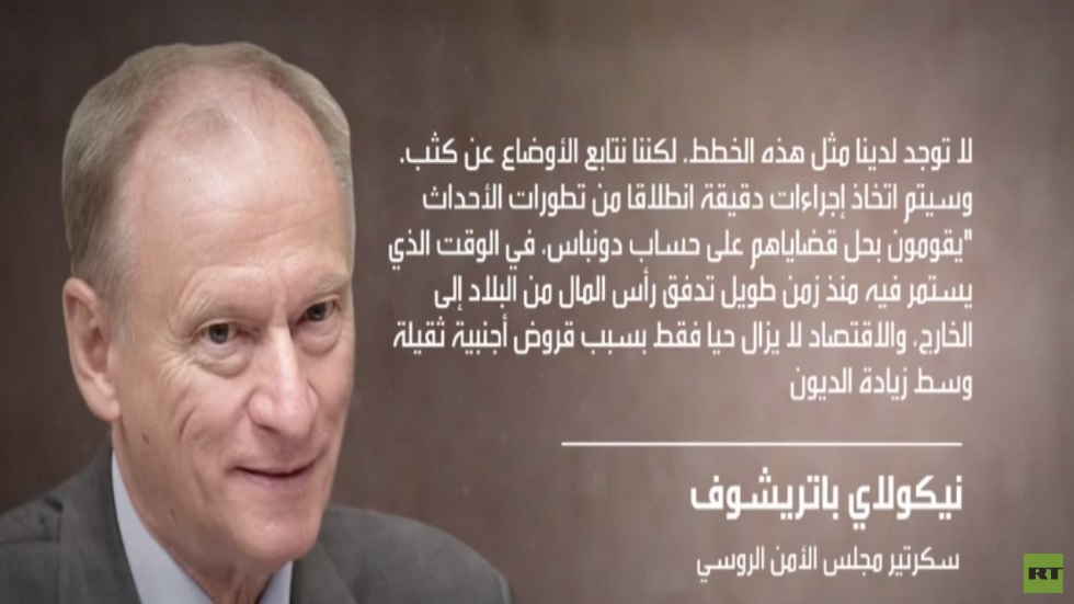 من جانبه، قال سكرتير مجلس الأمن الروسي نيقولاي باتروشيف إن روسيا لا تخطط للتدخل في أزمة دونباس، مؤكدا أن موسكو ستتعامل مع أي تطورات للأوضاع.