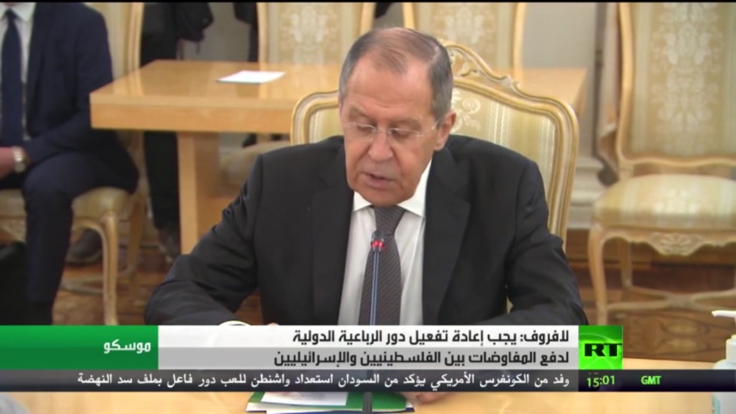 ودعا لافروف لإحياءِ رباعية السلام من أجل دفعِ المفاوضات. كاشفا عن جهودٍ روسية لتنظيم اجتماع وزاري للجنة