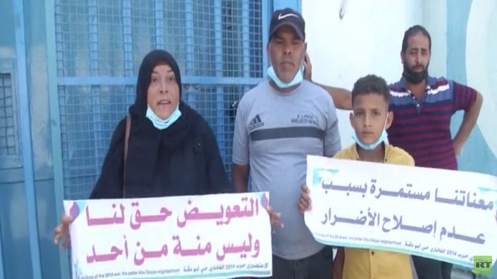 احتج متضررون من الحروب بين غزة وإسرائيل أمام مقر وكالة غوث وتشغيل اللاجئين مطالبين بإعادة إعمار بيوتهم، ورفض المتظاهرون تأجيل هذا الملف، أو أي مماطلات ووعود جديدة.