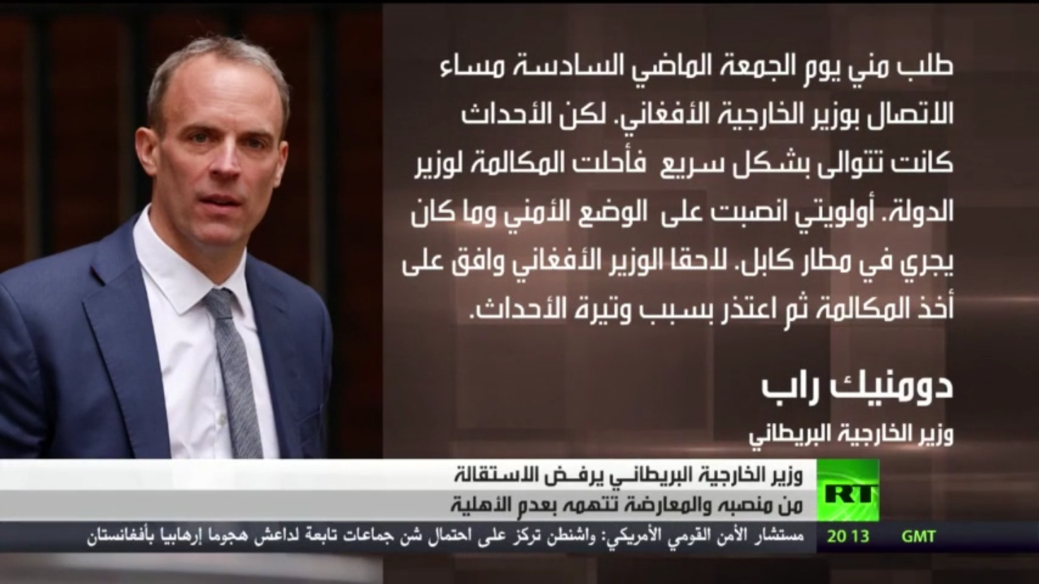ورفض راب قبل ذلك الدعوات المستمرة لاستقالته بعد بروز معلومات جديدة حول الجدل القائم بشأن مكالمة هاتفية مع نظيره الأفغاني قبل سقوط العاصمة كابل بيد طالبان.