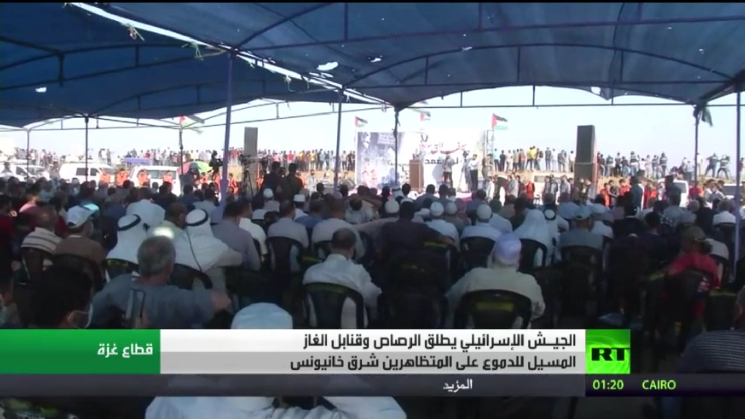 أطلق الجيش الإسرائيلي الرصاص الحي وقنابل الغاز لتفريق متظاهرين فلسطينيين احتشدوا شرق مدينة خانيونس جنوب قطاع غزة للمشاركة بالفعاليات الرافضة للحصار الإسرائيلي المفروض على القطاع.