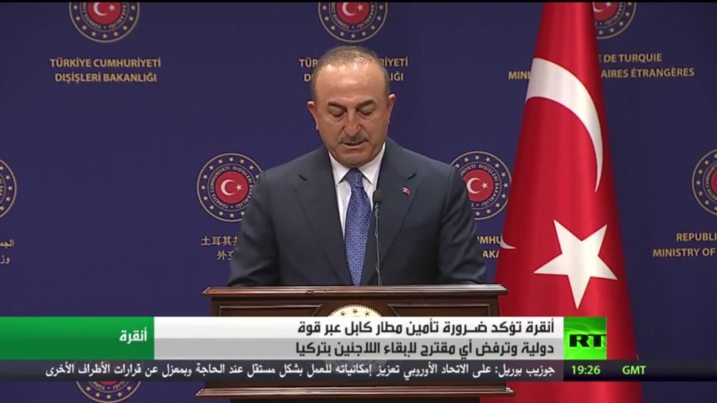 أكد وزير الخارجية التركي مولود تشاووش أوغلو في مؤتمر صحافي جمعه بنظيرته الهولندية سيغريد كاغ في أنقرة، أكد ضرورة تأمين مطار كابل الدولي من طرف قوة دولية.
