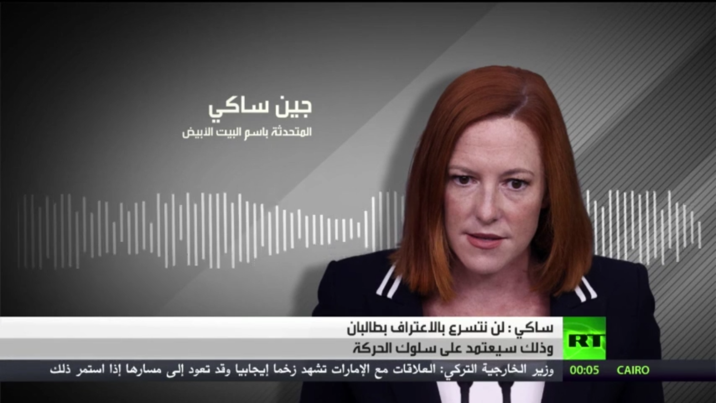 قالت المتحدثة باسم البيت الأبيض جين ساكي، إن واشنطن لن نتسرع في الاعتراف بطالبان.