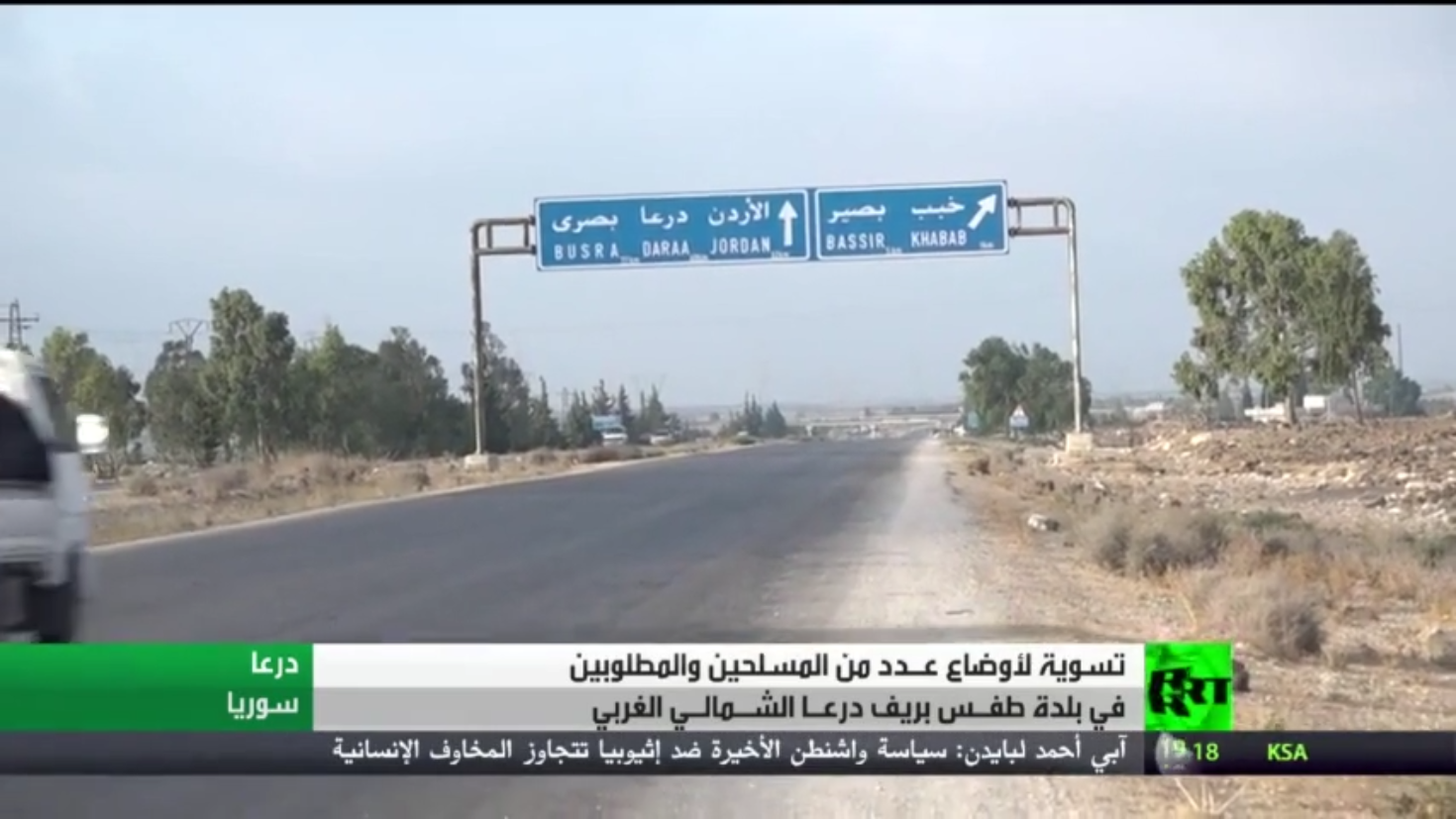 أفادت وكالة سانا، ببدءِ عمليةِ تسوية أوضاع عدد من المسلحين والمطلوبين، وتسليم أسلحتِهم للجيش السوري في مدينة طفس بريف درعا الشمالي الغربي، وفقَ اتفاق التسوية الذي طرحته الدولة.