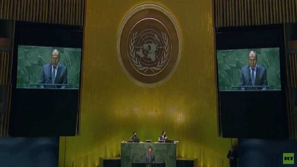 شدد وزير الخارجية الروسي سيرغي لافروف في كلمته أمام الجمعية العامة على ضرورة تعامل القوى العظمى بمبدأ الاحترام المتبادل لتفادي أي حرب نووية.