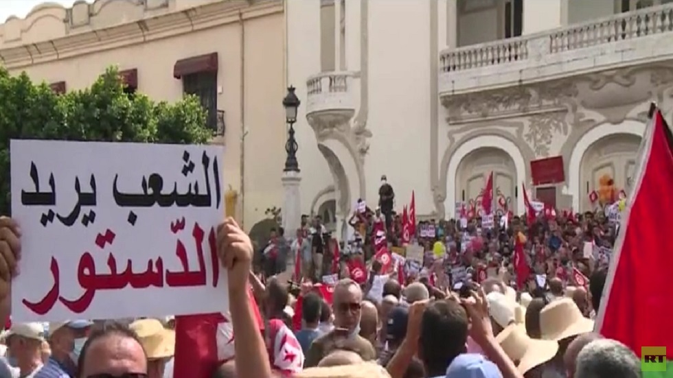 خرجت تظاهرات في شارعِ الحبيب بورقيبة وسط العاصمة التونسية احتجاجا على قرارات الرئيس قيس سعيد الأخيرة التي وصفوها بالانقلاب، في حين تجمعت أعداد من مؤيدي الرئيس دعما لقراراته.