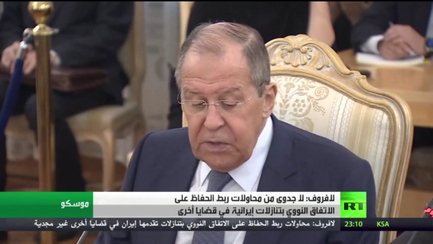 قال وزير الخارجية الروسي سيرغي لافروف خلال مؤتمر صحفي مع نظيره الإيراني حسين أمير عبد اللهيان .قال إنه لا جدوى من محاولات ربط الحفاظ على الاتفاق النووي بتنازلات إيرانية بقضايا أخرى