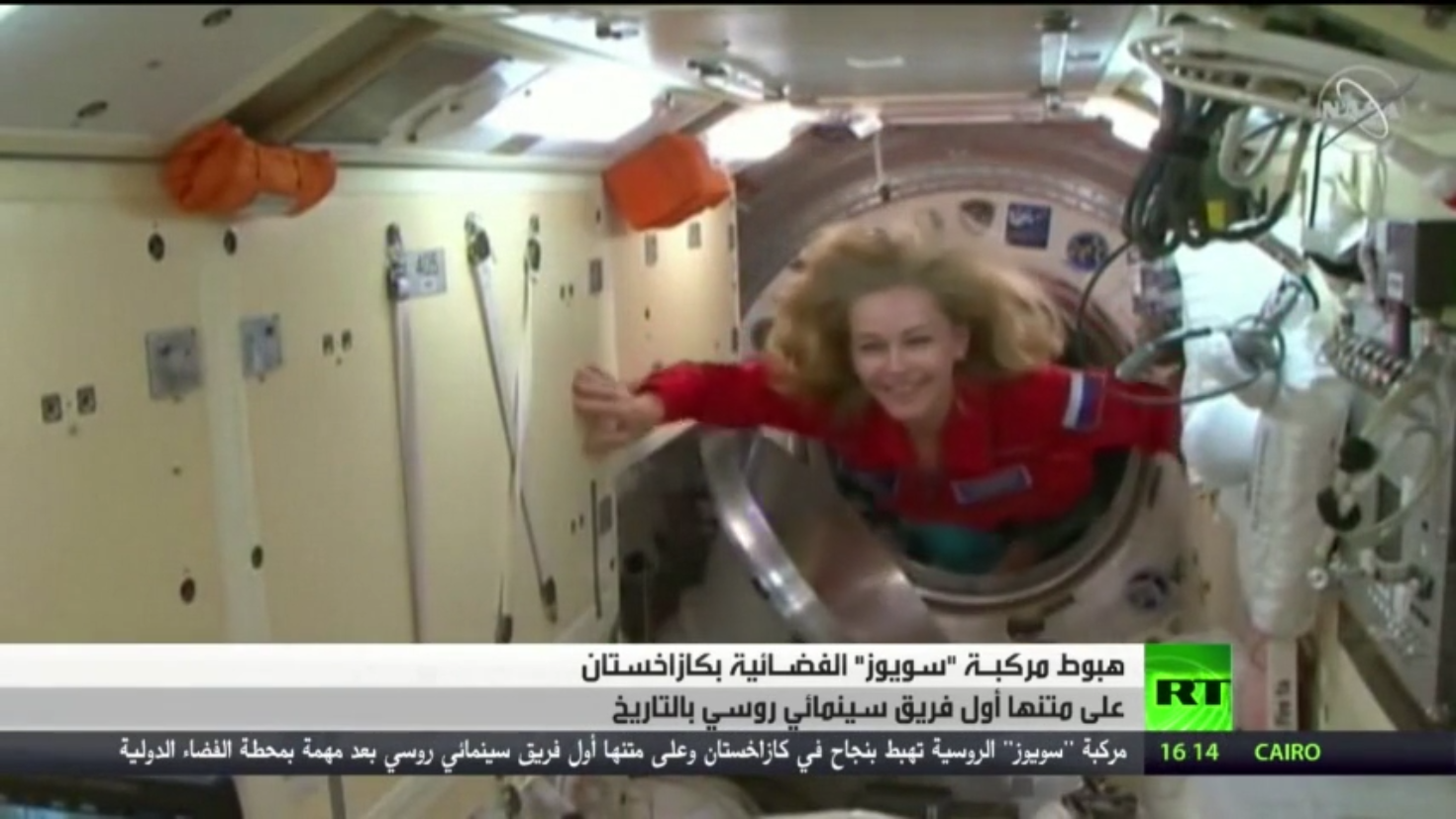 هبطت بنجاح مركبة "سويوز" الفضائية الروسية بكازاخستان، وعلى متنها أول فريق سينمائي روسي بعد مهمة بمحطة الفضاء الدولية استمرت 12يوما، وشملت تصوير أول فيلم سينمائي بالفضاء بالتاريخ.
