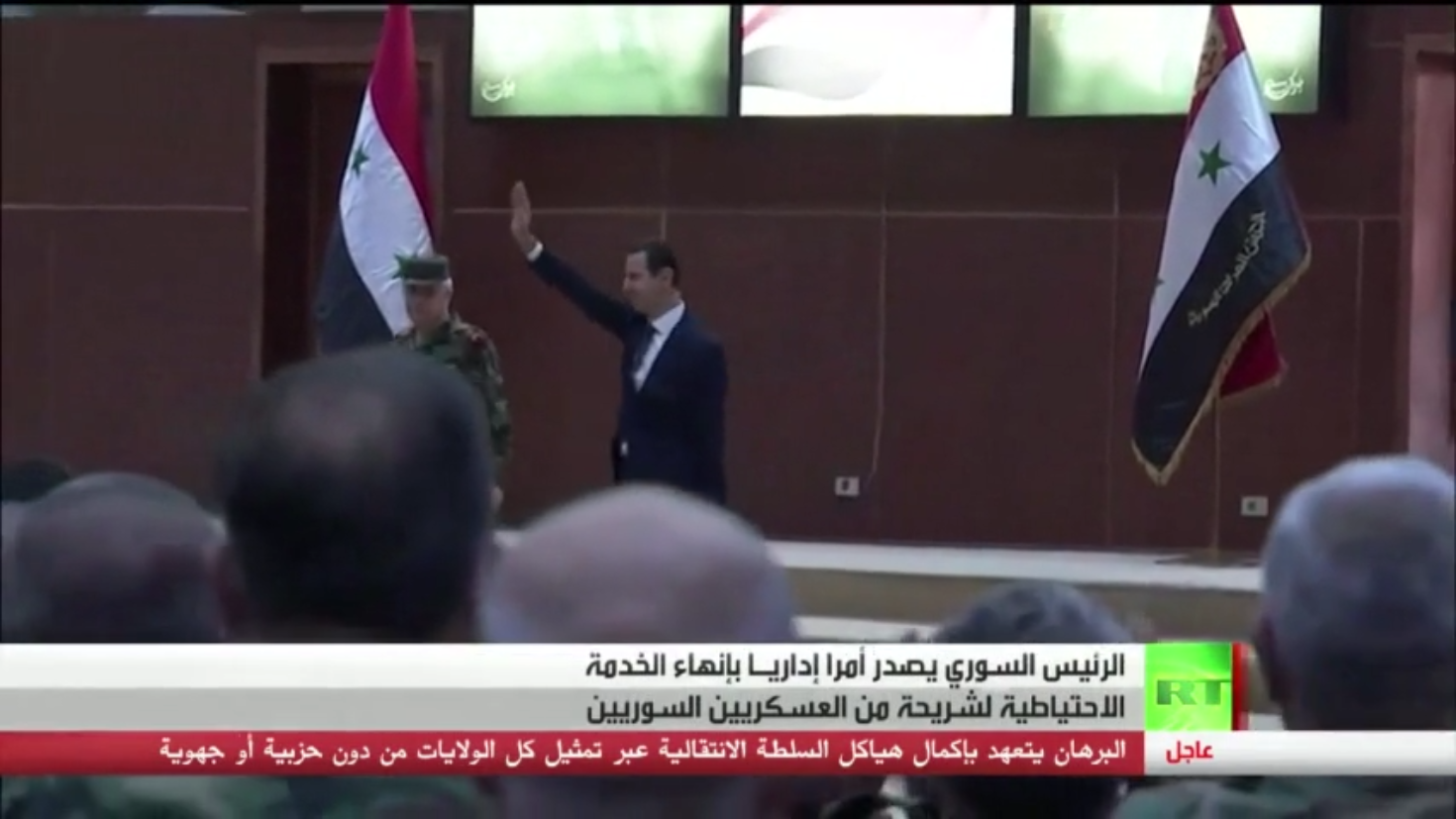 أصدر الرئيس السوري بشار الأسد أمراً إدارياً بإنهاء الخدمة الاحتياطية لشريحة من العسكريين السوريين.