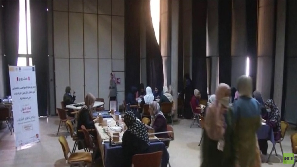 في مركزِ رشاد الشوا بمدينة غزة تعمل عشرات النساء في مشروع الحفاظ على التراث عبر الرسم والنحت والتطريز.