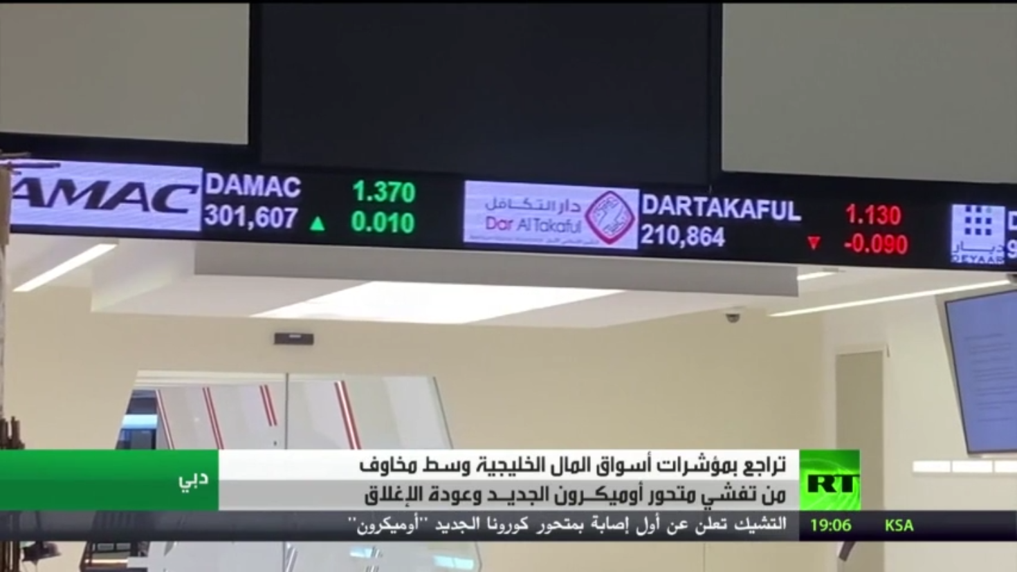انخفضت مؤشرات أسواق المال الإماراتية والسعودية بشكل حاد بالتزامن مع مخاوفَ من انتشار المتحور الجديد لفيروس كورونا أوميكرون واتجاه بعض الدول نحو الإغلاق.