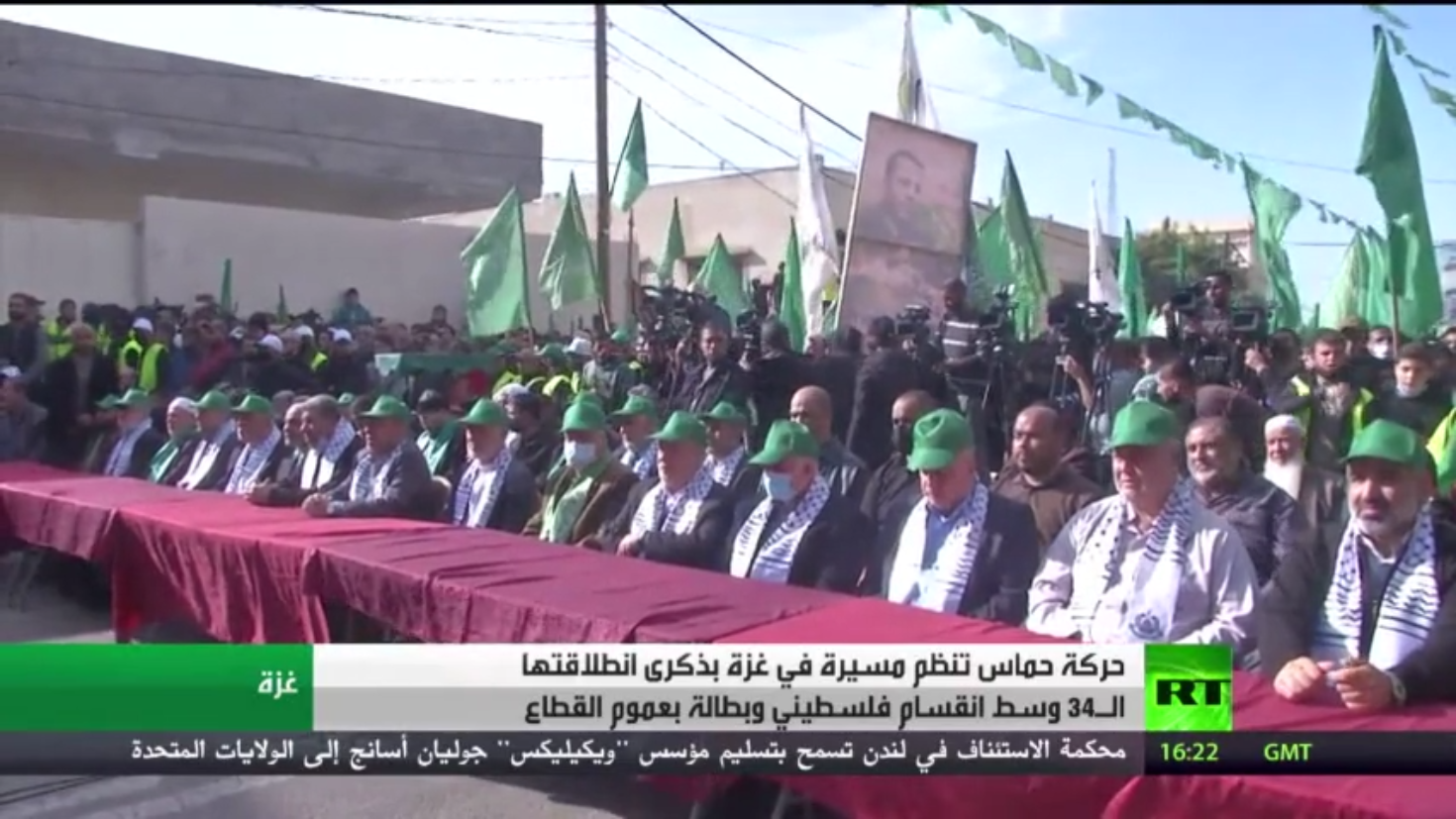 نظّمت حركة حماس في قطاع غزة مسيرة حاشدة في ذكرى انطلاقتها الـ34.