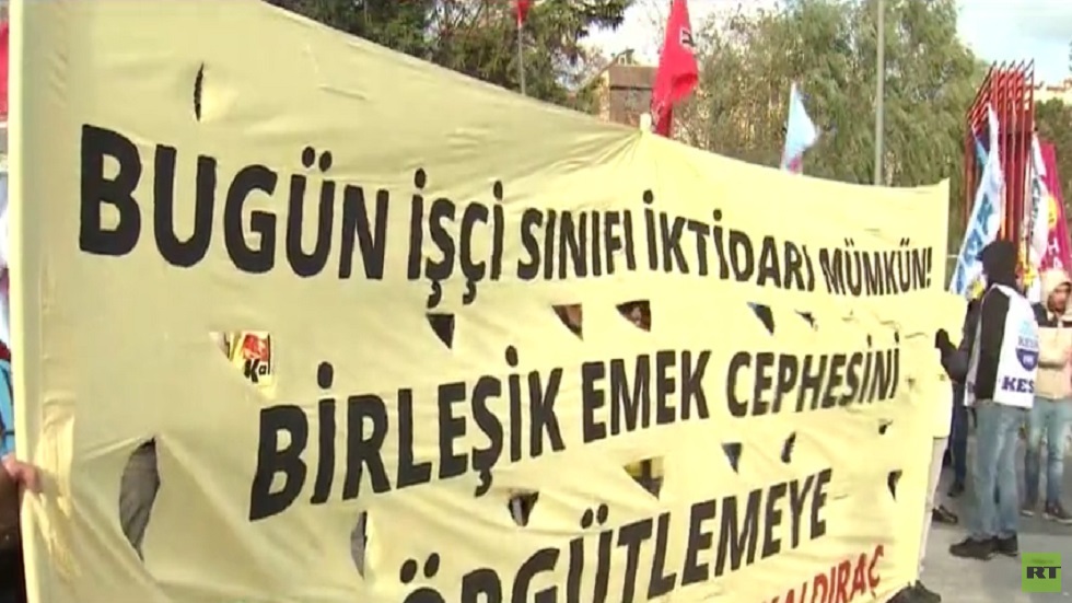 خرج آلاف المتظاهرين إلى شوارع إسطنبول وأنقرة ، بدعوة من نقابة العمال، للاحتجاج على زيادة التضخم وتدهور قيمة الليرة التركية.