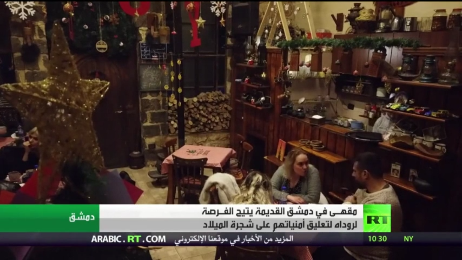 حوّل أحد المقاهي في مدينة دمشق القديمة شجرة عيد الميلاد إلى شجرة ذاتِ طابعٍ خاص، إذ يُعلِّق عليها رواد المقهى أمنياتهم للعام الجديد.