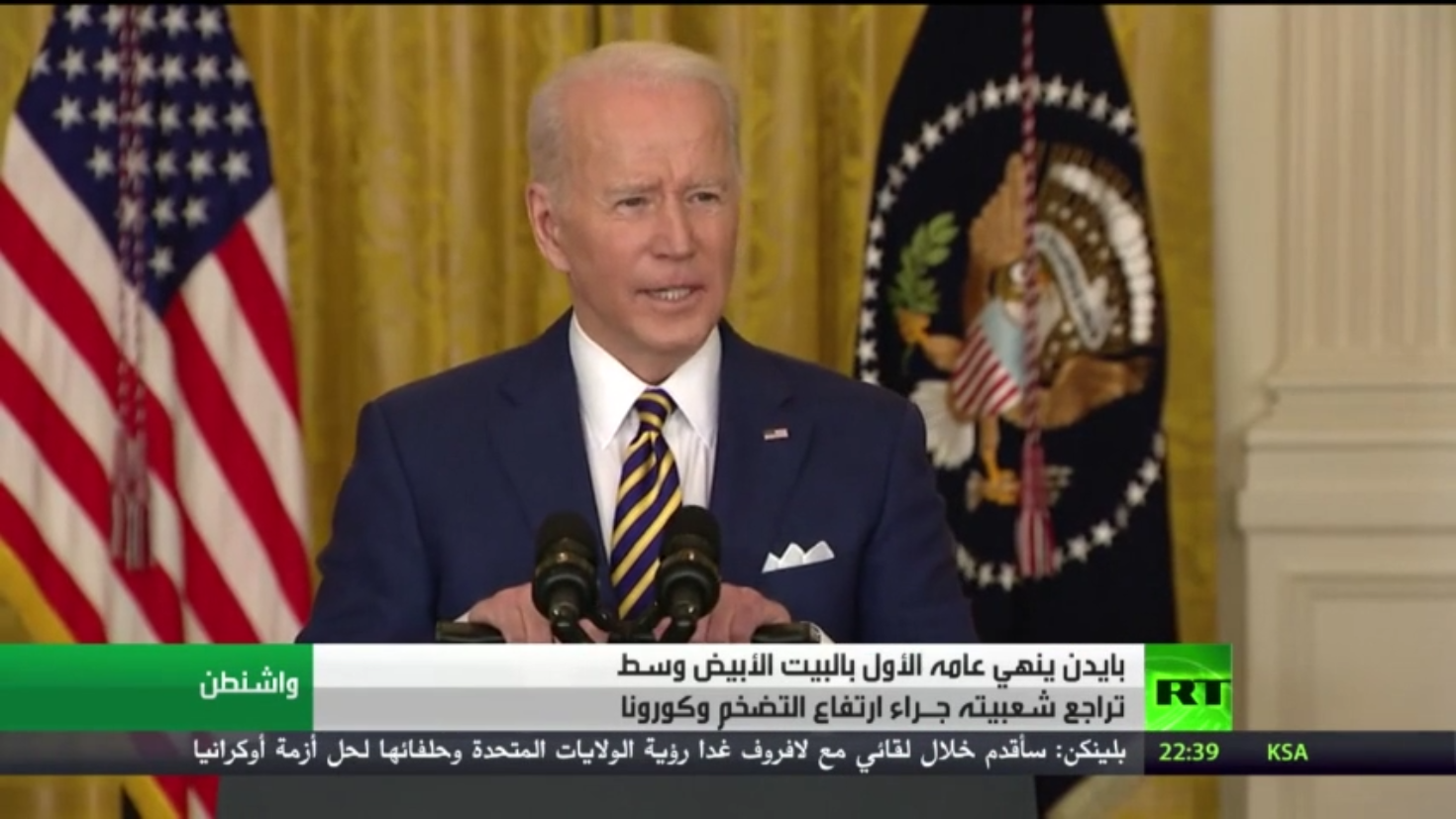 أتم الرئيس الأمريكي جو بايدن عامه الأول في منصبه وسط تراجع كبير في شعبيته تظهره آخر استطلاعاتٍ للرأي، وسط معارضة غالبية الأمريكيين لأسلوبه في التعامل مع جائحة كورونا .